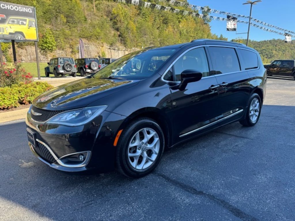 Hands Free Sliding Door & Liftgate Group (Hands Free Power Liftgate and Hands Free Sliding Doors), Quick Order Package 27J, Tire & Wheel Group (18" x 7.5" Painted Aluminum Wheels and Michelin Brand Tires), Navigation System, 13 Speakers, 3.25 Axle Ratio, 3rd row seats: split-bench, 4-Wheel Disc Brakes, A/V remote, ABS brakes, Air Conditioning, Alloy wheels, AM/FM radio: SiriusXM, Apple CarPlay/Android Auto, Audio memory, Auto-dimming Rear-View mirror, Automatic temperature control, Black Seats, Blind Spot & Rear Cross Path Detection, Bodyside moldings, Brake assist, Bumpers: body-color, CD player, Compass, Delay-off headlights, Driver door bin, Driver vanity mirror, Driver's Seat Mounted Armrest, Dual front impact airbags, Dual front side impact airbags, DVD-Audio, Electronic Stability Control, Emergency communication system: Uconnect Access, Four wheel independent suspension, Front anti-roll bar, Front Bucket Seats, Front dual zone A/C, Front Fascia Air Deflectors, Front fog lights, Front reading lights, Fully automatic headlights, Garage door transmitter, Headphones, Heated door mirrors, Heated front seats, Heated rear seats, Heated steering wheel, Illuminated entry, Knee airbag, Leather steering wheel, Low tire pressure warning, Manufacturer's Statement of Origin, Memory seat, Occupant sensing airbag, Outside temperature display, Overhead airbag, Overhead console, Panic alarm, ParkView Rear Back-Up Camera, Passenger door bin, Passenger seat mounted armrest, Passenger vanity mirror, Perforated Leather Trim Bucket Seats, Power door mirrors, Power driver seat, Power Front/Fixed Rear Full Sunroof, Power Liftgate, Power Open/Close Shade, Power passenger seat, Power steering, Power windows, Radio data system, Radio: Uconnect 4C Nav w/8.4" Display, Rear air conditioning, Rear reading lights, Rear window defroster, Rear window wiper, Reclining 3rd row seat, Remote keyless entry, Roof rack, Security system, Speed control, Split folding rear seat, Spoiler, Steering wheel mounted audio controls, Tachometer, Telescoping steering wheel, Tilt steering wheel, Touring Suspension, Traction control, Trip computer, Variably intermittent wipers, Voltmeter, and Wheels: 17" x 7.0" Diamond Cut Aluminum.